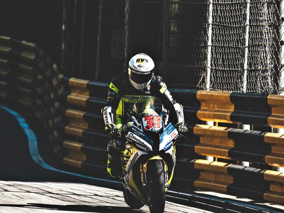 – Viime vuonna ajoin Eero ”Iekki” Hyvärisen kypärän väreillä, millä kunnioitin Iekin kilpailumenestystä Macaossa. Tänä vuonna kypärä on maalattu Jarno Saarisen punavalkoisiin väreihin, onhan Jarno yksi esikuvistani kilparadoilla. Samalla tämä kunnioittaa sitä, että Jarno Saarisen kuolemasta tuli tänä vuonna kuluneeksi tasan 50 vuotta.