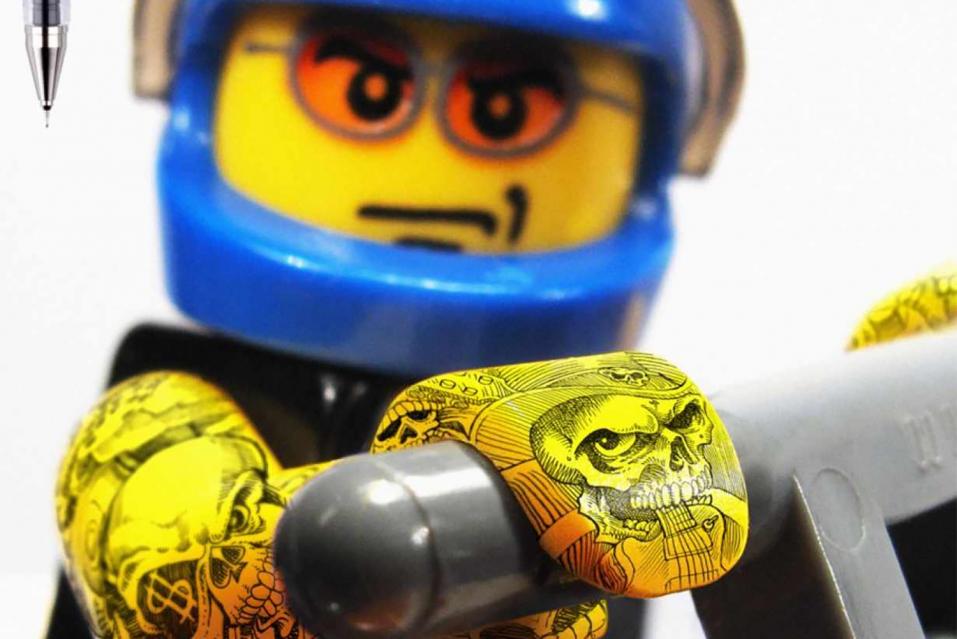 Mainoskuvien tarkoituksena on korostaa kynänvalmistajan extrafine-kynien jäljen selkeyttä ja ohuutta. Ja pakko myöntää, että siinä on taidettu onnistua, koska legoukothan eivät ole juuri koolla pilattuja. Jokainen, joka katsoo kuvia, voi suhteuttaa viivan ohuuden ja selkeyden ukkojen pieneen kokoon.