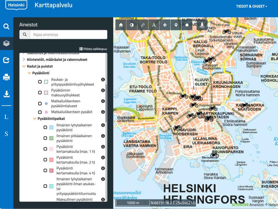 – Klikkaamalla karttanäytöllä näkyviä moottoripyörän kuvakkeita selviää, onko parkkipaikka kesäkäyttöön vai ympärivuotiseen käyttöön tarkoitettu. Kartan tämänhetkisestä ajantasaisuudesta en ole ihan varma. En tiedä, milloin sitä on päivitetty viimeksi.