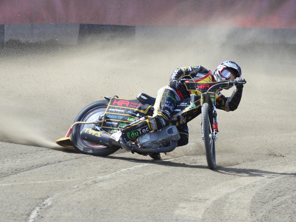 - Rajusti tuli pataan. Joukkue kaipaa Lindbäckiä kovasti. Rata oli tänään heikossa kunnossa, isoja reikiä, kalkkiviivaa siirrettiin jne. Eka erä oli minulta hyvä. Viimeisessä erässä ajoin liian sisältä ja vastustaja tuli ulkoa ohi. Huomenna ajetaan kotona, siellä pitää pystyä parempaan, kommentoi Jesse Mustonen.