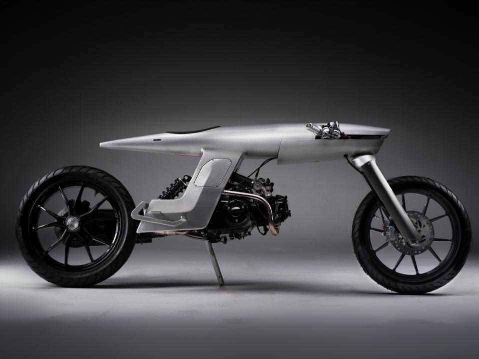 Ulkonäön eheyttä korostaa myös se, että pyörän pakoputkisto on piilotettu rakenteeseen ja 8 litraa vetävä polttoainetankki on sulautettu runkoon.