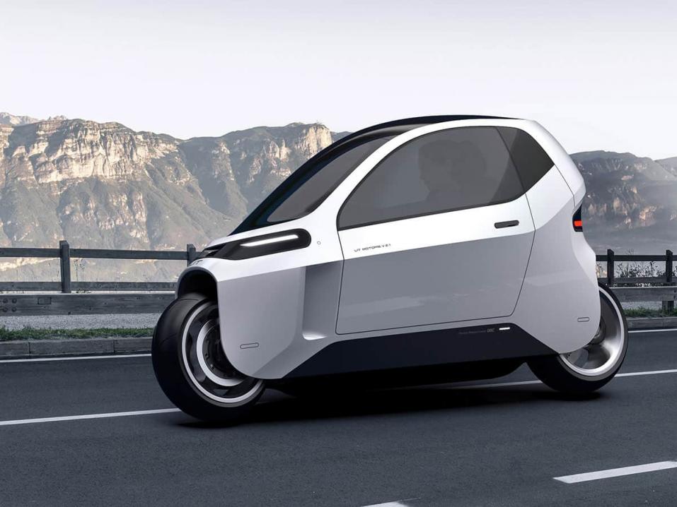 Yhdysvaltalaisen Danny Kimin kehittämä ajoneuvo on kuin suoraan 70-luvun tulevaisuudenutopioista: korilla varustettu auton ja moottoripyörän hybridi – eräänlainen kaksipyöräinen sukkula. Siinä on kaikki moottoripyörän hyvät puolet. Pieni koko, keveys, ketteryys ja ohjaaminen kallistamalla. Umpikori puolestaan mahdolllistaa mukavan matkustamisen kelissä kuin kelissä.