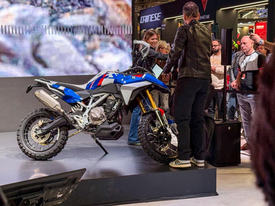 BMW Motorradin pääjohtaja Markus Flasch esitellessään mallia EICMA-messujen pressitilaisuudessa.