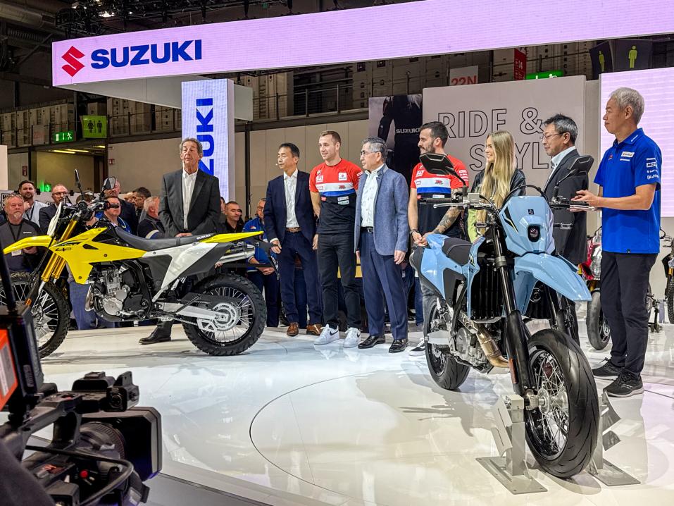 Suzukin uudet keskikoon mallit: Supermoto DR-Z 4SM (kuvassa oikealla) ja DR-Z 4S dualsport.