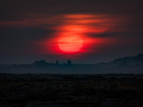 Auringonnousu autiomaassa 5. etapilla 9. tammikuuta 2025, Al Ulan ja Hailin välillä. Kuva A.S.O./F.Gooden/DPPI.