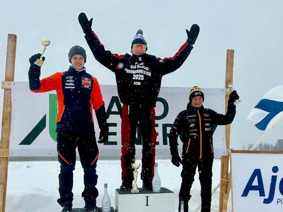 Rantala, Kallio ja Pirttinen vesikelin valtiaita SM-jääradalla Orivedellä
