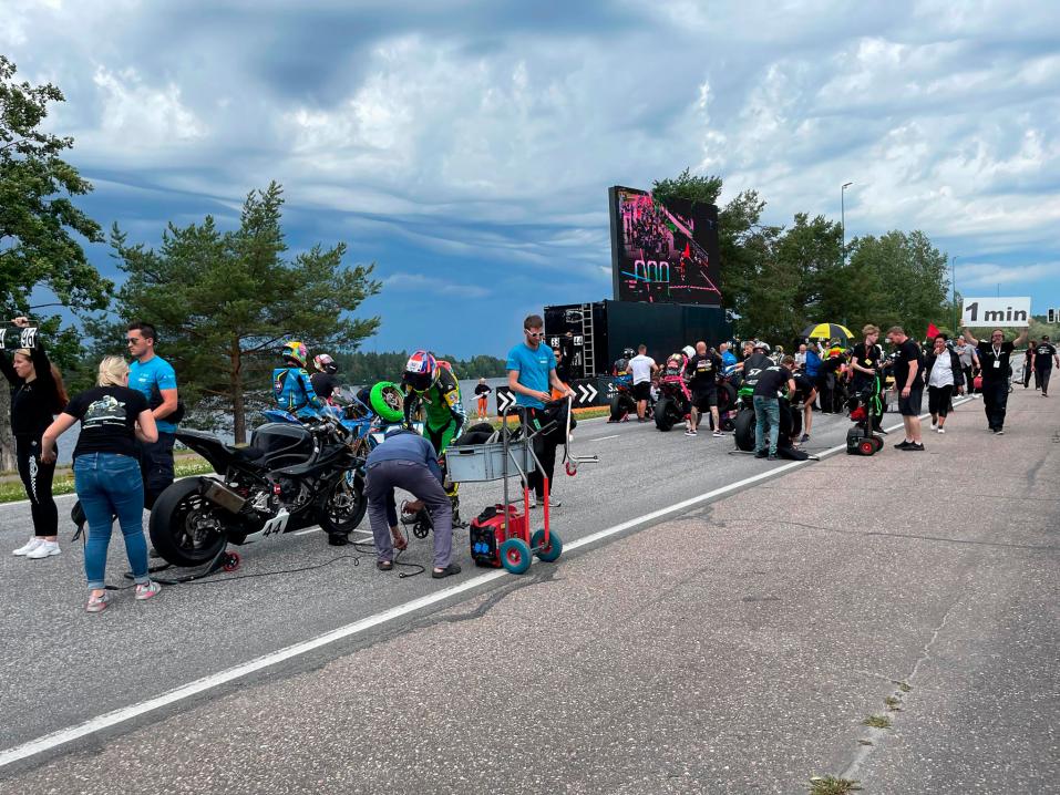 "Tänään ei ajeta, tuuli on liian voimakas kilpailun johto ja tuomaristo on päättänyt että liian vaarallisen voimakkaan tuulen takia ei ajeta. Uusi aikataulu ilmoitetaan parin tunnin sisään."
