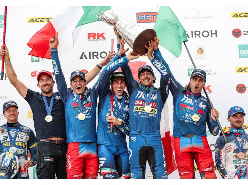 Viidennen päivän päätteeksi Italian joukkueella oli ylivoimainen johtoasema tämän vuoden World Trophy -kilpailussa ja joukkue nautti voitosta myös viimeisen päivän finaalissa ajetussa cross-testissä, kun joukkue julistettiin 6DAYS Enduro of Nations'in kokonaisvoittajiksi.