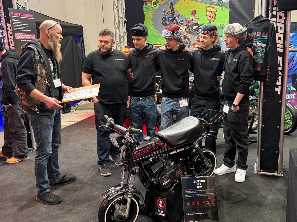 Vuoden 2025 possupinssikeräyksen tuotto lahjoitettiin tänään lauantaina Mopoilevat nuoret ry:n edustajille MP26-messuilla MP Jonnelassa.