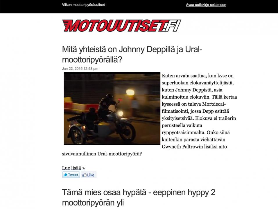 Viikottaiseen uutiskirjeeseemme on aina koottuna otos siitä, mitä moottoripyörien maailmassa tapahtuu. Tarjolla on tuoretta tietoa, sillä Motouutiset.fi:ssä on uusia juttuja päivittäin.