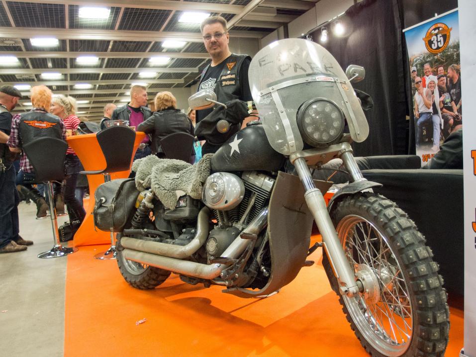 185 kilometriä Sysmästä messuhalliin taittui aikaan 2 h 2 min, eli keskinopeus oli 90 km/h. Tiedot ovat tallentuneet puhelimeen, josta kaikkea muutakin faktaa matkasta löytyy, kiitos nykyteknologian. Korhonen itse edustaa Joensuu-Liperi-Sysmä akselilla toimivaa MC Wulfia.