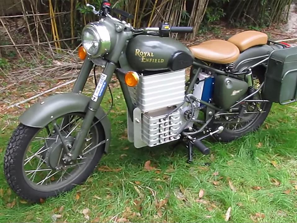 Pyörä on vuosimallin 2005 Royal Enfield Bullet 500 Military. Siinä on käytetty akkuina 11 kappaletta Nissan Leafin moduleita. Moottori on ME 1003 ja säätimenä Alltrax AXE 7245. Pyörän rakentaja käyttää YouTubessa nimimerkkiä "Electric Drive".