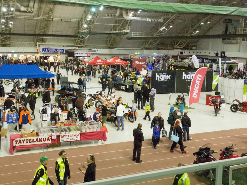Messujen vapaaehtoisille on messujen ajan omassa taukotilassa tarjolla kahvia ja sämpylöitä. Anita Kajaan oli katsomassa, että kaikkea riittää. Anita on muutaman vuoden istunut sujuvasti kyydissä, kun isäntä lainaa pojan omistamaa Suzuki Intruuder 1800:aa.