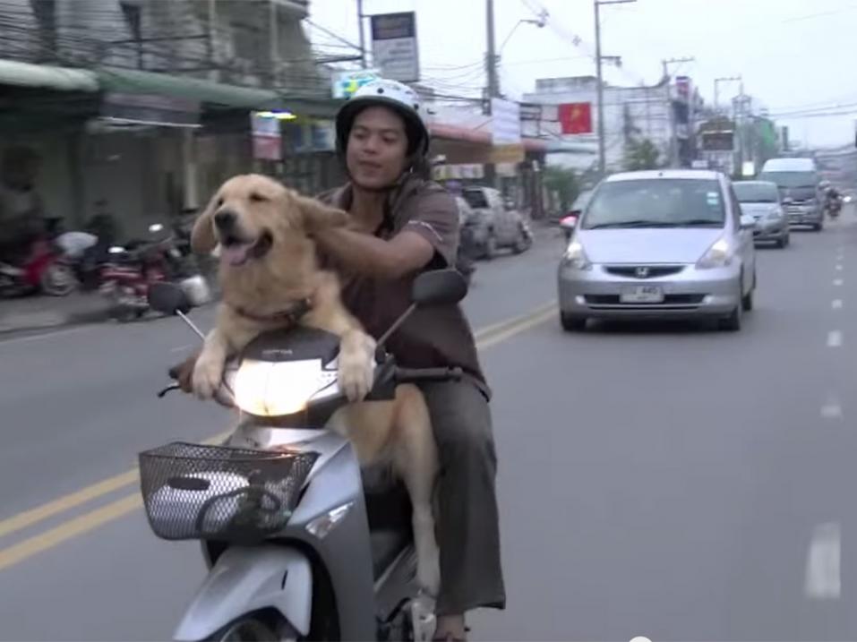Kultainen noutaja mopoilemassa? Kyllä vain. Ja tämä video todistaa taas kerran, miten hauskaa kaksipyöräisellä moottoroidulla ajoneuvolla ajaminen voi olla, sillä koirat eivät yleensä valehtele, eivätkä peittele oikeita tunteitaan. Katso video, jollet usko. Ehkä ajoasento ei ole koiran kannalta ergonomisesti paras mahdollinen, mutta se ei näytä menoa haittaavan.