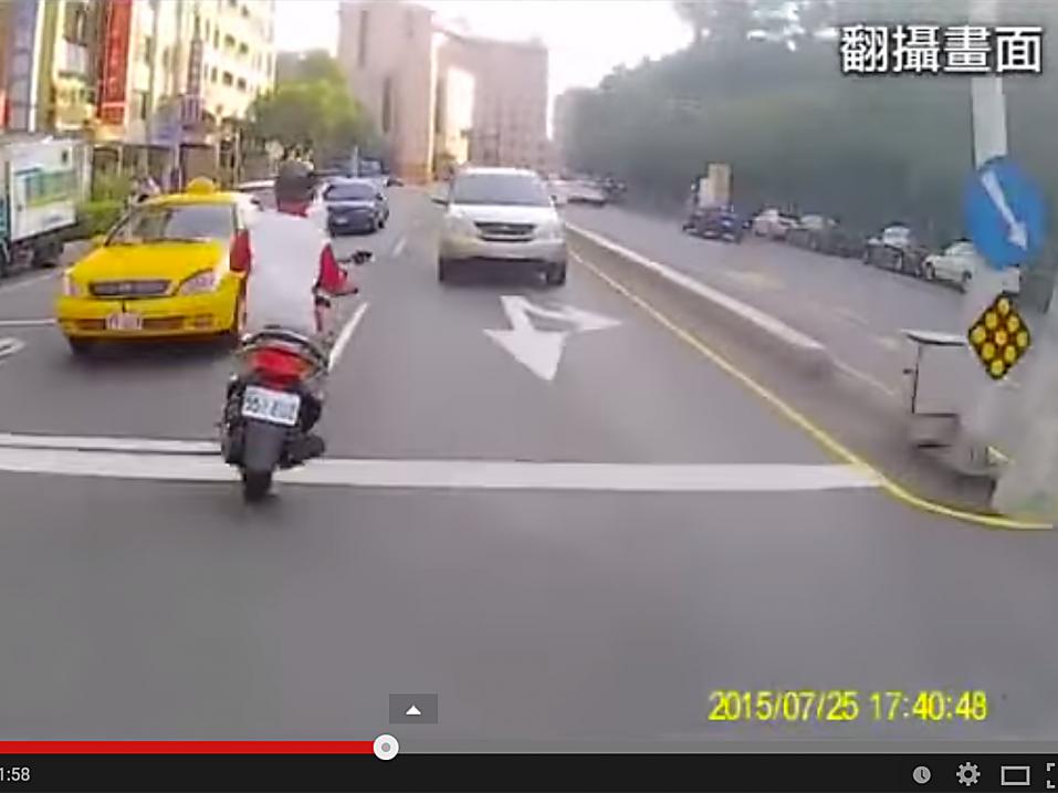 Hurjan takaa-ajon pääosissa ovat Taiwanin kaduilla yksi varastettu skootteri, epätoivonen skootterivaras joka yrittää kaikkensa - ajaa jopa autokaistalla vastavirtaan päästäkseen pakoon - sekä takaa-ajava, päättäväinen poliisi. Videolla on loppunsa, joka muistuttaa vähän amerikkalaista poliisielokuvaa, jossa paha saa palkkansa. Ja skootterivarkaan omasta virheestä vielä.