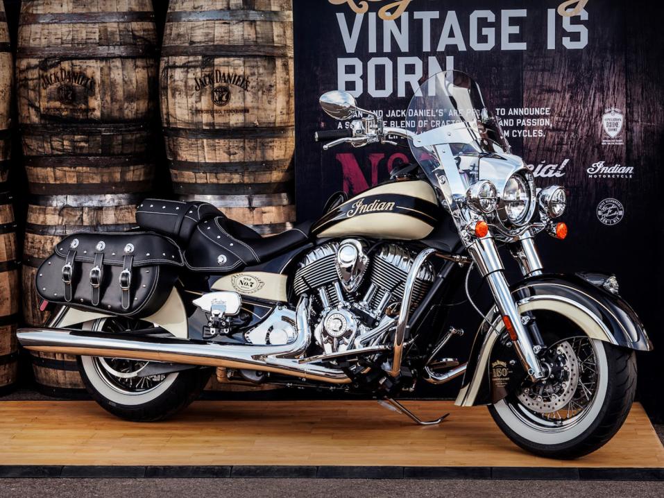 Jack Daniels -teemainen Indian Chief Vintage moottoripyörä on suunniteltu sopimaan viskintislaajan tyyliin ja väritykseen. Oheisista kuvista voit arvioida, onko siinä onnistuttu oikealla tavalla.