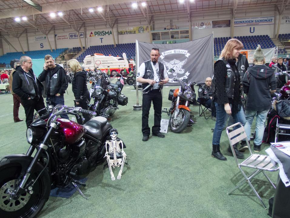 – Custom Bikers Finlandin kerhomerkki korostaa vapautta. C.B.F on perustettu noin kaksi vuotta sitten. Ajatuksen ideoitsijoina toimivat Paul Nylander, Marko Patokoski ja Ari Riekkinen, jotka olivat moottoripyöräilyä harrastavia Facebook-ystäviä. Emme ole MC tai MCC, eikä meistä sellaista koskaan tule. Jäseniä on tähän mennessä kertynyt 264. Yleisimmin meidät on löydetty yhdistyksen FB-sivujen kautta ja jäsenmäärän kasvaessa tietysti sana on levinnyt. Myös jäsenten liivit on huomattu, jonka innoittamana olemme saanut lisää jäseniä. Jäseniä on ihan ympäri Suomea Torniosta alaspäin.Tämä Bikeshow on ensimmäinen kerta, kun olemme näin isosti näkyvillä, Tiina Patokoski toteaa.