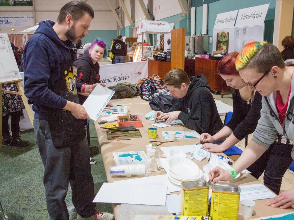- Nyt teillä kaikilla viivat alkavat eri kohdista ja päättyvät eri kohtiin. Lähtöpaikka on yhtä tärkeä kuin päätös: pitää lopettaa yhtä kauniisti kuin aloittaa. Jos kyseessä on vaikka moottoripyörä tai auto, pitää tietää, mihin kuvio päättyy. Ottakaa nyt ensin skeittariasento ja piirtäkää viiva kehoa liikuttamalla, siirtämällä painoa jalalta toiselle. Tällöin käsi siirtyy vartalon liikkeen mukana. Jos käyttää pelkästään kättä, niin käden käyttö tuo tärinää viivaan, ohjaa kurssilla opettajana toimiva seinäjokinen Hannu Nivala.