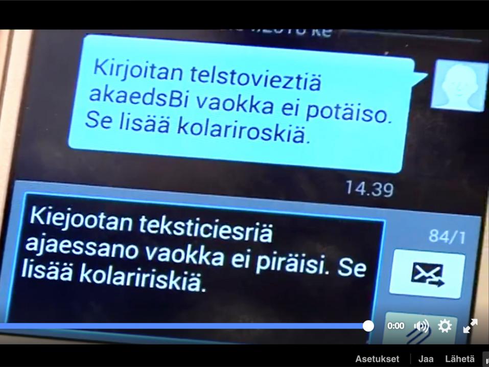 Ajotuntuma ei simulaattorilla ole välttämättä sama kuin oikealla - varsinkaan tutulla - autolla, eikä Riikka selvästikään kovin kokenut kuljettaja, mutta viesti on selvä: matkapuhelimella ei kannata tekstailla tai katsella kuvia ajon aikana. Tai edes puhua ilman handsfreeta.