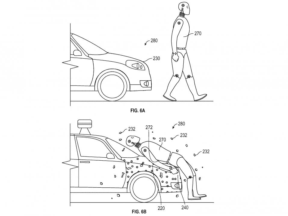 Googlen itseohjautuvan auton etupään rakenne on patentin mukaan sellainen, että se ensinnäkin antaa periksi, ja imee iskun voimaa, kun siihen paiskautuu jalankulkija, pyöräilijä tai motoristi (niin toivomme) tai vaikkapa villieläin. Samalla rakenteen vaimentaessa iskua ja mennessä kasaan vapautuu liimaa, joka nappaa törmäyksen uhrin ja estää tätä putoamasta auton pyörien alle tai muun liikenteen sekaan.