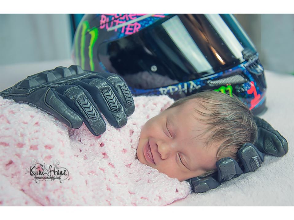 Kuvassa, joka on nähtävissä tämän jutun aloituskuvana tyttö on aseteltuna isänsä ajohanskojen ja kypärän kanssa. Sitä on jaettu Facebookissa jo yli 78 000 kertaa tätä juttua kirjoitettaessa.