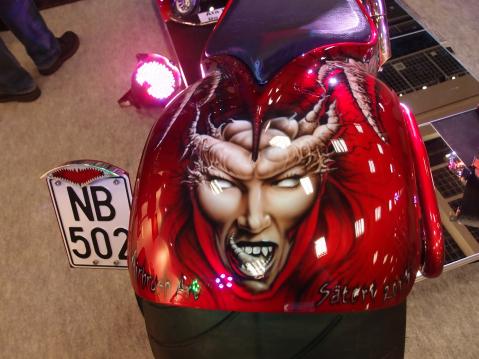 Lahden moottoripyörämuseon ständilla Hanna Talvala alias Honey Diamond oli töissä ja odotti maailmanmestarilegenda Giagomo Agostinia ja palveli hymyillen asiakkaita. – Meillä Pin-upin tytöillä on hymytakuu, missä sitten työskentelemmekin. Hanna tienaa perusleipänsä tullivirkailijana ja moottoripyörilee kesäisin 'Tupla-x:llä'.