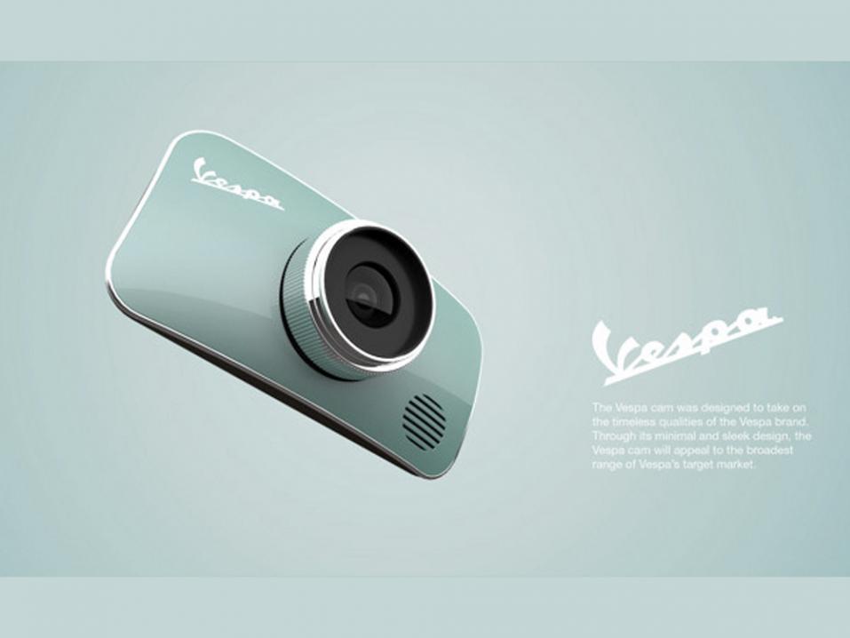 Vespan skoottereiden persoonallinen muotokieli on helposti tunnistettavissa. Muotoilijat Rotimi Solola ja Cait Miklasz ryhtyivät leikittelemään ajatuksella, että mitä jos Vespa olisikin kamera? Kuten kuvista näkyy, Vespan pulleanpyöreät muodot ovat konseptista edelleen helposti tunnistettavissa.