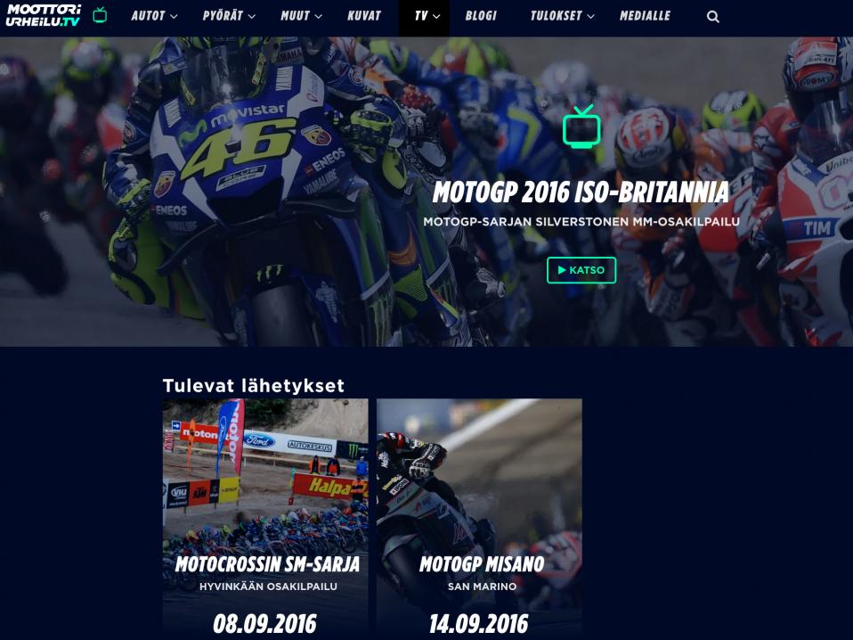 Suomen moottoriurheilun kattojärjestöjen AKK-Motorsport ry:n ja Suomen Moottoriliitto ry:n omistama Moottoriurheilu.tv-nettiportaali laajentaa toimintaansa ja alkaa näyttää jatkossa SM-sarjan kisoja sekä myös sellaisia moottoriurheiluohjelmia, jotka ovat tähän saakka olleet katsottavissa vain maksullisilla kanavilla. TV-osion ensimmäisessä aallossa suomalaiset pääsevät nauttimaan MotoGP-sarjan koostelähetyksistä, jotka ovat katsottavissa sivuilla kilpailun jälkeisenä keskiviikkoaamuna aina kahden viikon ajan.