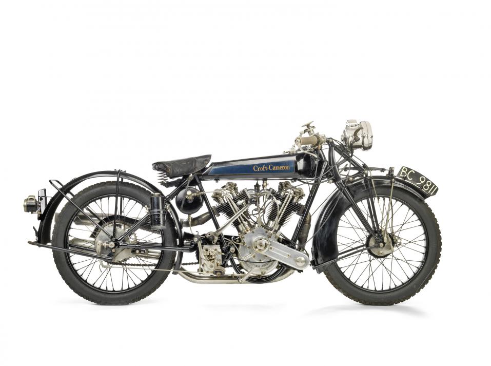 Huutokaupan tähti, vuosimallin 1924 Croft-Cameron 996 cm3 Super Eight on nimestään huolimatta V-twin, ja merkkiä valmistettiin lyhyen aikaa 1920- ja 30-luvuilla. Sana "eight" nimessä johtuu neliventtiilikansista, joten venttiilejä oli siten yhteensä kahdeksan. Lopullinen huutohinta 225 000 euroa oli lähellä etukäteisarvion ylintä hintaa.