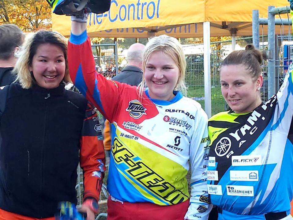 Suomen joukkue Annamaria Karikuusi, Marita Nyqvist, Jennifer Siekkinen kruunattiin lauantaina Hollannin Harfsenissa ajetussa enduron EM-joukkuekilpailussa Euroopan mestareiksi, kun vahvasti ajanut Ranskan joukkueen Audrey Rossat joutui keskeyttämään.