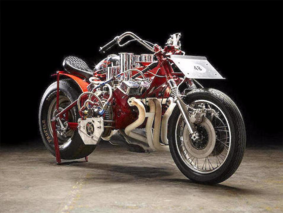 Pyörä on itse asiassa melkein pelkkää moottoria. Paitsi renkaita, on vaikea tietää, mistä moottori alkaa, ja mihin se loppuu. Pyörä on kaupan Bonhamsin Las Vegasin huutokaupassa, johon vielä ehdit mukaan, jos olet nopea (ainakin netin kautta). Pyörän hinta-arvio on 61 000 - 79 000 euroa.