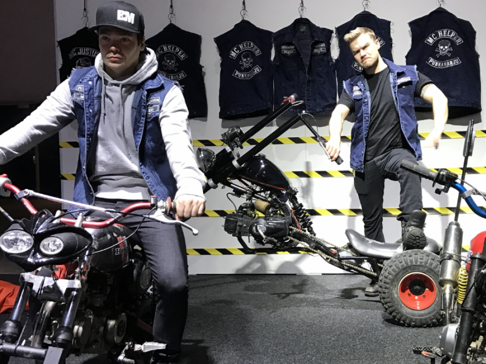– MC Helper-jengiläiset käyttäytyvät kuin oikea laiton gangsterijengi, mutta ajavat mopoilla. He "diilaavat" huumeiden sijasta energiajuomaa. Kontrasti on huvittava. Kuvatessamme nettiin kymmenosaista sarjaa, niin yhden jakson nimi oli MC Helper 1, jota varten sitten tehtiin kerholiivit.