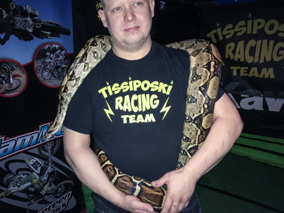 – Tissiposki Racing perustettiin virallisesti 2012. Toimintaa meillä on ollut vuodesta 2008 lähinnä kelkkapuolella. Tämä on lähtenyt mukavan kaveriporukan yhteisestä päätöksestä ja kuten tiimin nimestäkin voi päätellä, niin tarkoituksena on tähdentää, että harrastaminen voi olla myös kivaa, vaikka sitä tosissaan tehdäänkin. Niinkuin nyt tämäkin. Kuinka monta käärmettä olet täällä nähnyt? Huomio on taattu, aloittaa tiimin päällikkö Antti Kallas. – 2012 päätin virallistaa tämän tiimin toiminnan, lähinnä tukeakseni poikani motocross-harrastusta.