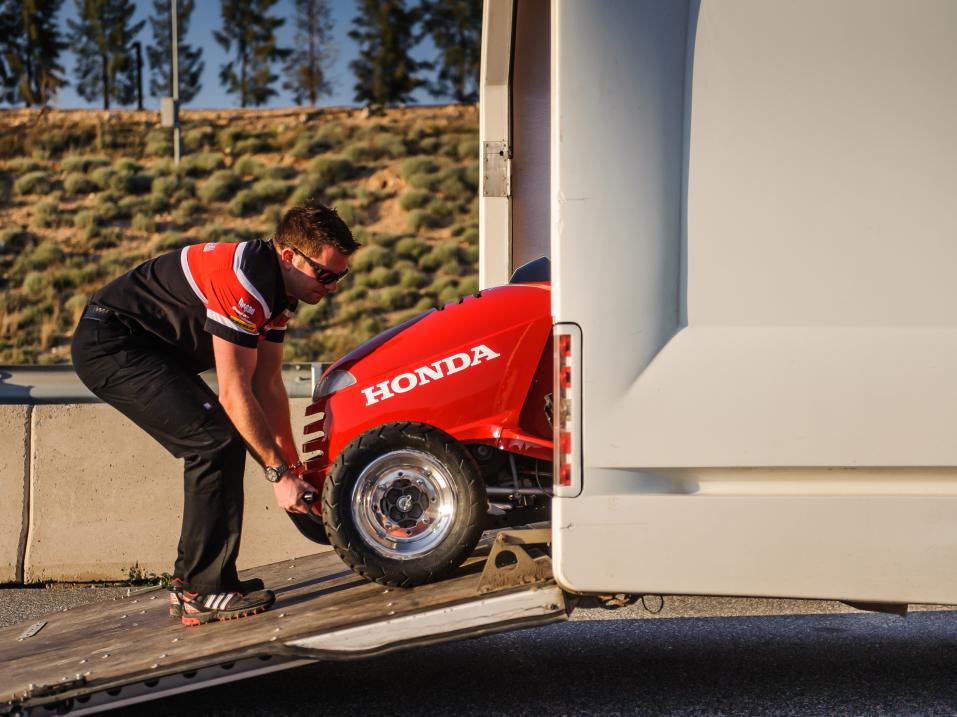 Men Mowerin moottorina käytettiin Hondan VTR Firestormin 1000-kuutioista moottoria, joka oli välitetty 209 km/h huippunopeuteen. Moottori tuottaa 96Nm väännön ja 0-100 km kiihtyvys on ruohonleikkurille huippua, vain 4 sekuntia. Laitteen jousitus ja vanteet olivat mönkijästä.