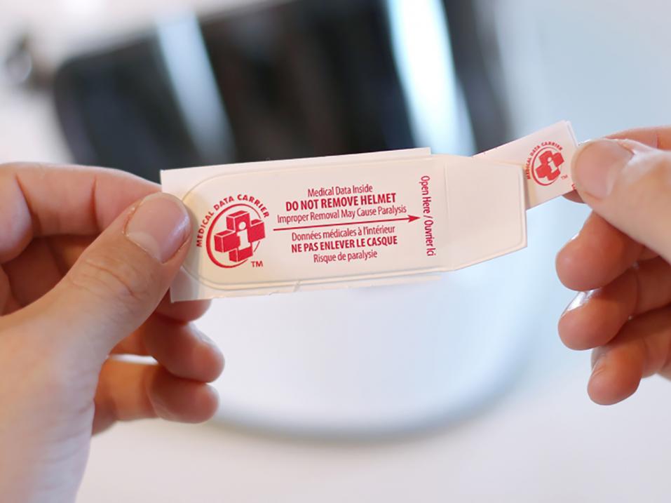 Koteloon on myös painettuna teksti, jossa kielletään satunnaista paikalletulijaa irrottamaan kypärää onnettomuuteen joutuneen päästä halvaantumis- tai vielä pahempien riskien vuoksi, ja jättämään irrottamisen ensivasteen ammattilaisten hoidettavaksi.