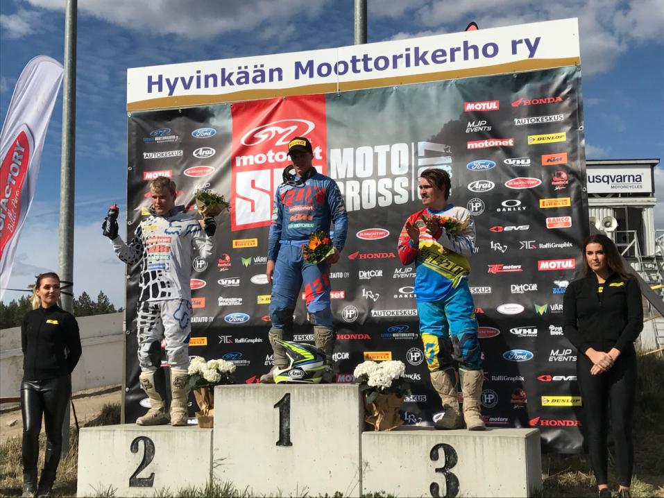 Motocrossin SM-sarjan piti alkaa jo kaksi viikkoa sitten Sipoossa, mutta keliolosuhteiden vuoksi kilpailu jouduttiin perumaan. Nyt Hyvinkäällä päästiin kisaamaan hienossa aurinkoisessa säässä.