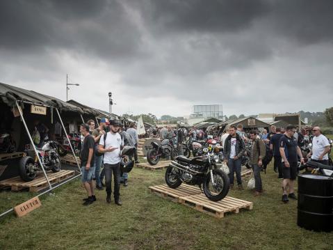 Honda at Wheels and Waves: CX500-variantti. Numerokilpi 69 vasta menehtyneen Nicky Haydenin muistolle.
