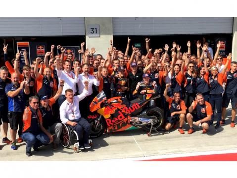 Mika Kallion kymmenes sija KTM:n kotikilpailussa Itävallassa oli juhlan paikka koko tiimille. Kuva: Nita Korhonen