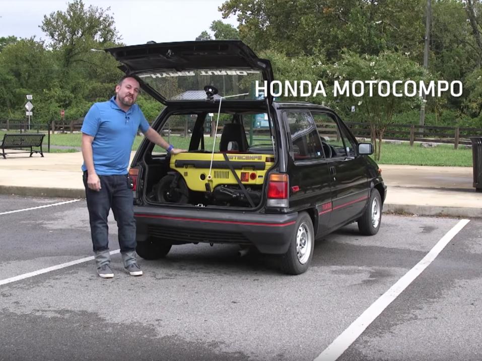 Jalopnikin Jason Torchinskyn tuorein video esittelee Hondan City Turbon vuosimallia 1981. Aikanaan siihen sai lisävarusteena auton tavaratilaan mahtuvat Honda Motocompo -skootterin. Viimemainittu oli matkalaukun mallinen kokoontaitettava 50-kuutioisella ja 2,5 hevosvoiman moottorilla varustettu ajokelpoinen kulkuväline sille viimeiselle kilometrille, jonne autolla ei päässyt tai mahtunut.