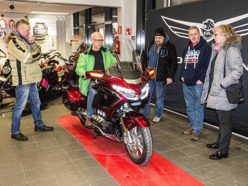 Uuden Honda Gold Wingin esittelytilaisuus oli järjestetty pyörästä kiinnostuneille, siksi katsojamäärä oli maltillinen, mutta katsojat sitäkin kiinnostuneempia. Pyörän ensimmäiset kappaleet on jo myyty, kertoi pyörää maahantuojan Brandt Oy:n edustajana paikalla ollut Otto Lindgren.