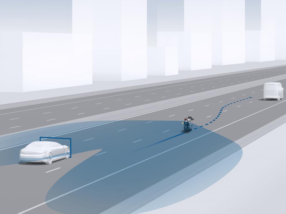 Tämä järjestelmä seuraa moottoripyörän ympäristöä mahdollistaakseen sen, että motoristi voi turvallisesti vaihtaa kaistaa. Tutka toimii sokean pisteen tunnistusjärjestelmän sähköisenä silmänä ja rekisteröi nekin kohteet, jotka eivät ole näkökentässä.