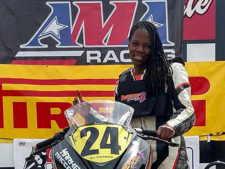 Harris tunnettiin ensimmäisenä afro-amerikkalaisena ammattimaisena naispuolisena road race -kuljettajana. Hän toimi elokuvassa Zazie Beetzin esittämän Domino-supersankarin stunttina. Deadpool 2 oli Harrisin ensimmäinen elokuvastunttikeikka. Hän kuoli menetettyään moottoripyöränsä hallinnan ja törmättyään rakennukseen.