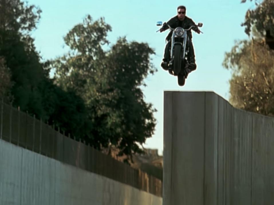 Fat Boylla toteutaan myös yksi elokuvahistorian huimimmista takaa-ajokohtauksista, kun T-800 käyttää sitä pelastaakseen kohteen jota hänen tulee suojella, eli John Connorin (Edward Furlong matkassa pienellä Honda XR offroad-pyörällä). Takaa-ajo on saavuttanut ikonisen aseman, ja sitä on matkittu ja mukailtu useammissa elokuvissa sen jälkeen.