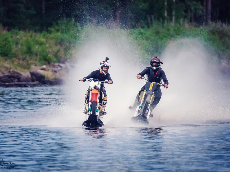 Moottoripyörien ajo veden päällä liittyy viikonloppuna järjestettäviin Naantalin Venemessuihin. Tavoitteena on tehdä uusi maailmanennätys moottoripyörällä vedenpäälläajon huippunopeudessa. Asialla ovat tietenkin extremekuskit vedenpäälläajon ME-mies Matias Kivisaari ja hänen kumppaninsa Lauri Keränen.