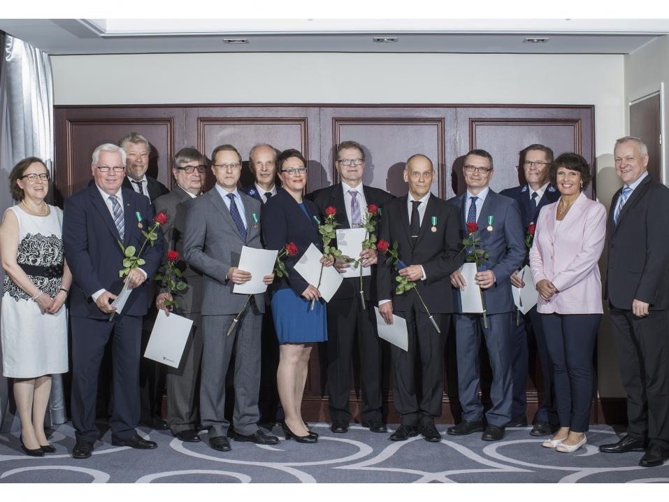 Ministeri Berner luovutti ansiomitalit palkituille 1.6.2018 Helsingissä.