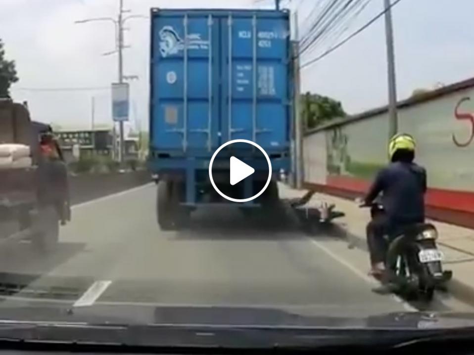Oheinen video nostattaa katsojallakin hiukset pystyyn ja saa kiittelemään kypäränkäyttöpakkoa, vaikka videon tapahtumat eivät sijoitukaan Suomeen. Onneksi kypärä kesti. Paljaalle päälle kuorma-auton renkaan alla olisi tainnut käydä paljon huonommin. Video ei sovellu herkille.