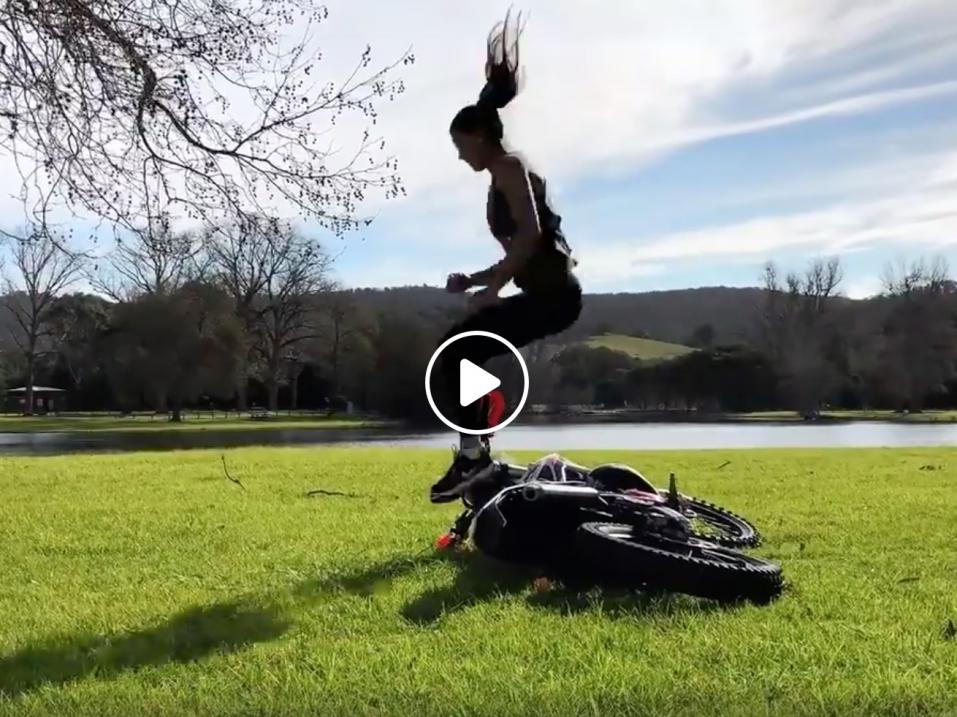 Mikäli video ei näy alla, Ina Hallsin tähdittämän videon voi katsoa itävaltalaisen Dirtbike Custom Collaborationin Facebook-sivuilta.