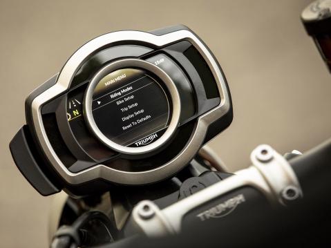 Mielenkiintoista on se, että Triumph Scrambler on ensimmäinen moottoripyörä jossa on natiivi tuki GoPron kameroille suoraan mittaristosta pyörän Bluetooth-yhteyden avulla.