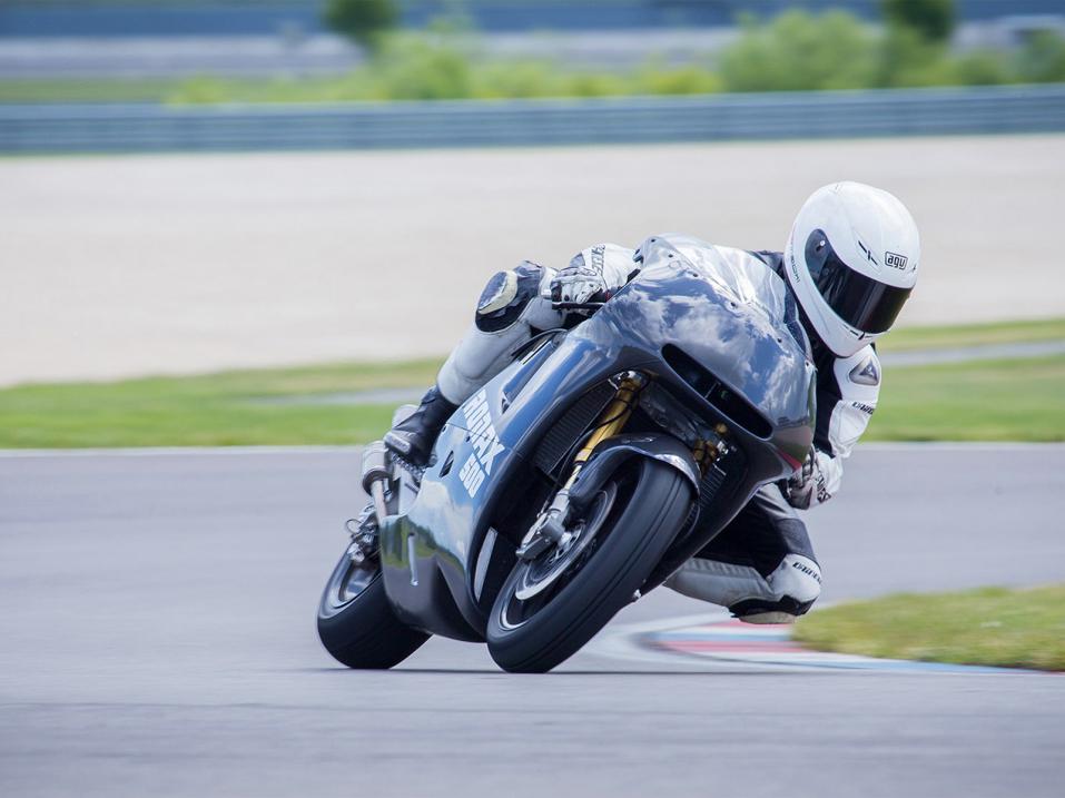 Dresdeniläisvalmistaja on saanut inspiraationsa Valentino Rossin työkalusta varhaiselta 2000-luvulta, Honda NSR500:sta. V4-moottoriin syötetään polttoainetta kaasuttimen sijasta ruiskulla ja siitä lähtee 160 hevosvoimaa 11 500 kierroksella minuutissa. Alumiinipalkkirunko, alumiininen takahaarukka, täysin säädettävät Öhlinsin iskunvaimentimet, Brembon jarrut sekä hiilikuitukatteet täydentävät paketin.