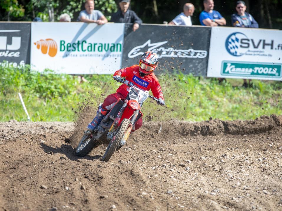 - Ilman vesisadetta rata olisi ollut todella kuiva ja pölyinen. Olihan se nyt tietenkin aamun treeneissä märkä ja liejuinen, mutta meitä aiemmin ajaneille luokille vielä vaikeampi. Varsinkin ”kassariluokalla” oli vaativaa, Kullas kuvaili viitaten alle 15-vuotiaiden MXC/A-luokkaan.